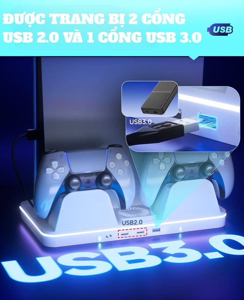 - Sạc nhanh 2 tay cầm Ps5 chỉ trong 2h