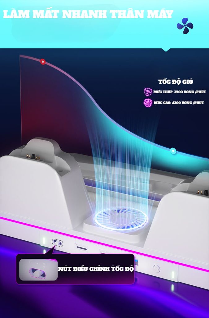 Đế Tản Nhiệt Sạc Đa Năng Cho Máy Ps5 Pro/ Slim/ Fat IINE L1061