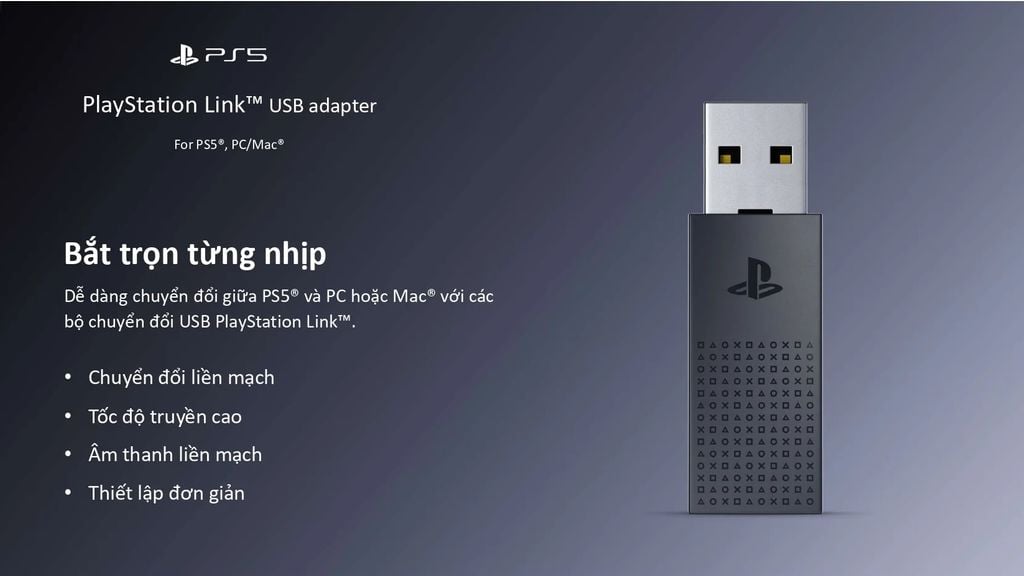 - Dùng để kết nối tai nghe PULSE Elite™ hoặc PULSE Explore™ với PS5® hoặc PC or Mac®